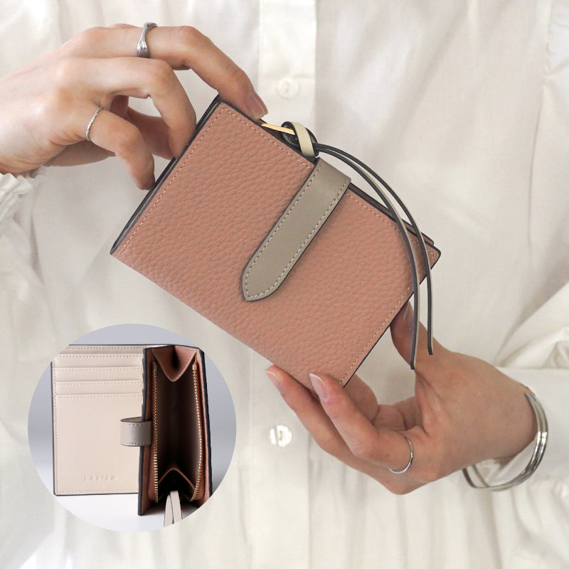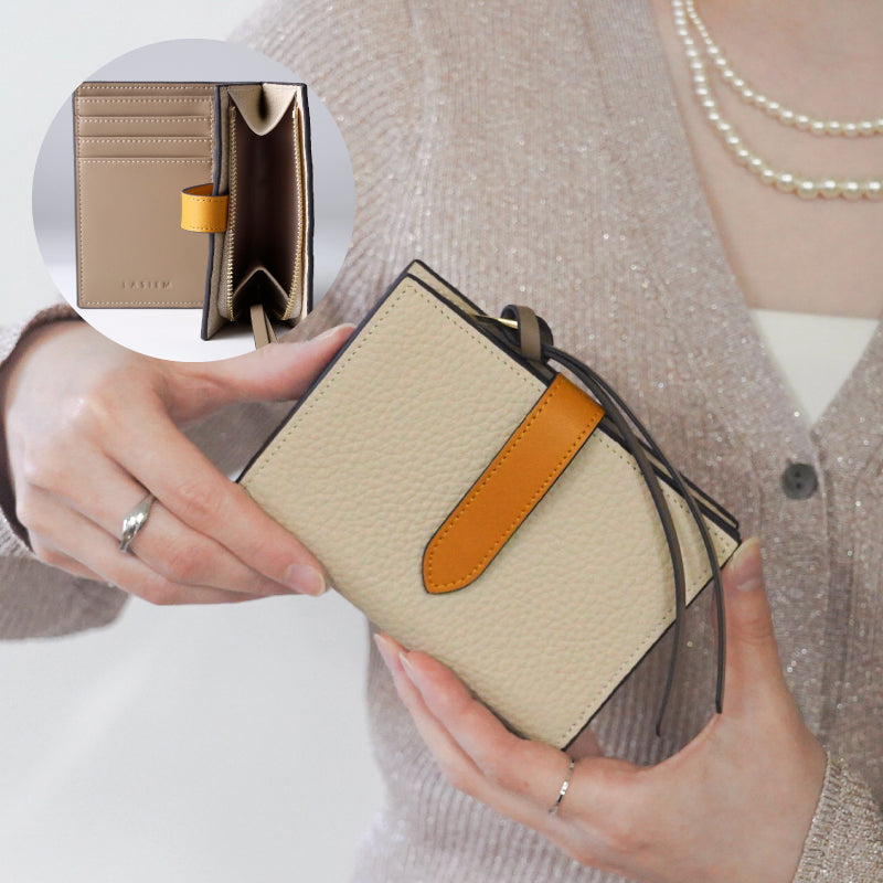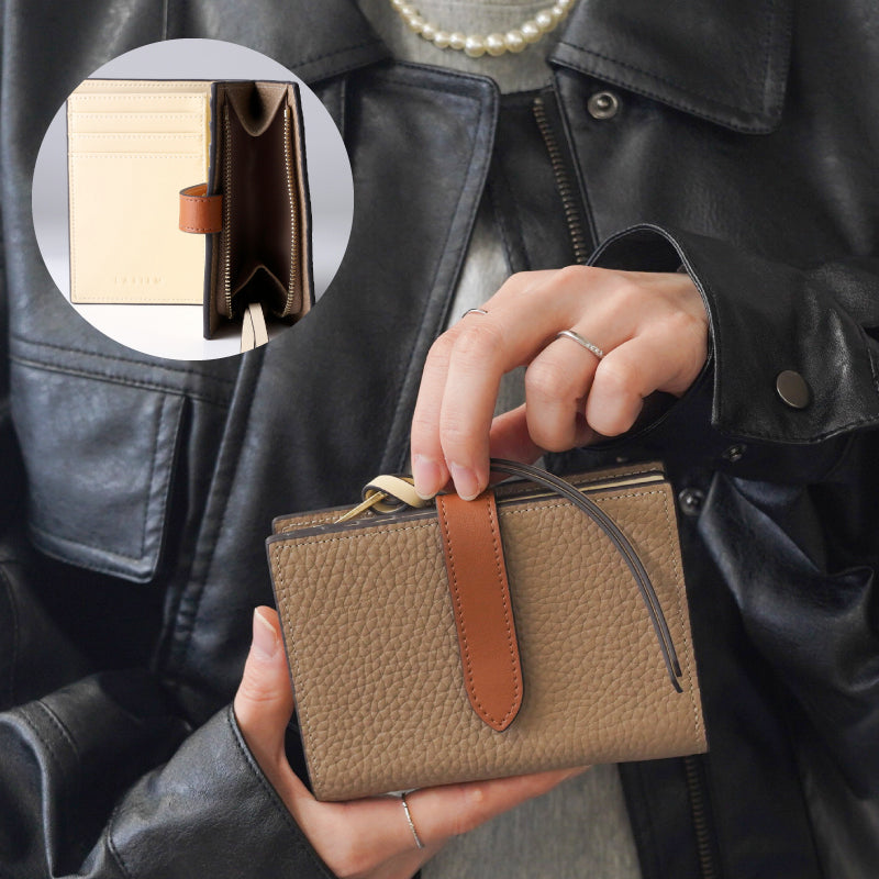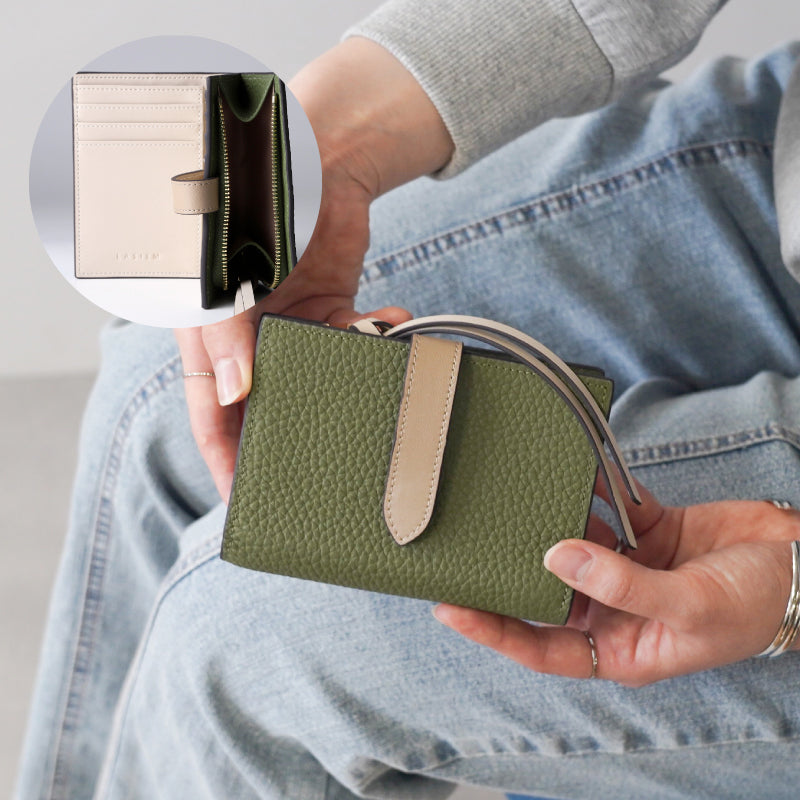 特徴 | ■「妥協なきこだわりの結晶」 全432万通りの組合せから厳選した配色が、上質さと大人の遊び心を演出。 ベルトの幅や長さ、引手のデザインなど、 細部までミリ単位で試作を繰り返し、ようやく完成したこだわりの結晶です。 ■「持つたびに気分が上がる、上品フォルム」 無駄を省いたシンプルなフォルムに、さりげないベルトのアクセントが加わることで、上品で洗練された印象を演出。 持つたびに、普段の日常が少し華やかに。 ■「ずっと触れていたい美しいシボレザー」 手触りの良い牛本革を贅沢に使いました。丈夫で傷が付きにくいので永く愛用していただけます。 ■「気分で選べる、2つの引手」 ファスナーの引手は14cmと6cmの2種類。シーンや気分に合わせて、簡単に付け替え可能です。 ■「小さいのに大容量」 カードポケットx8 小銭入れx1 カードポケットx1 お札入れx1 こんなに入ります カードx10枚 コインx20枚 お札x10枚 領収書など ■「取り出しやすい小銭入れ」 あえて仕切りを付けていない設計。 パッと一目で中身が見渡せます。 ■「スキミング防止機能」 大切なカードの情報を外部から守ります。 |