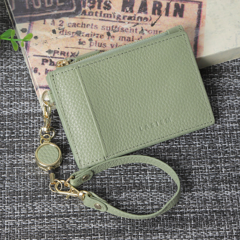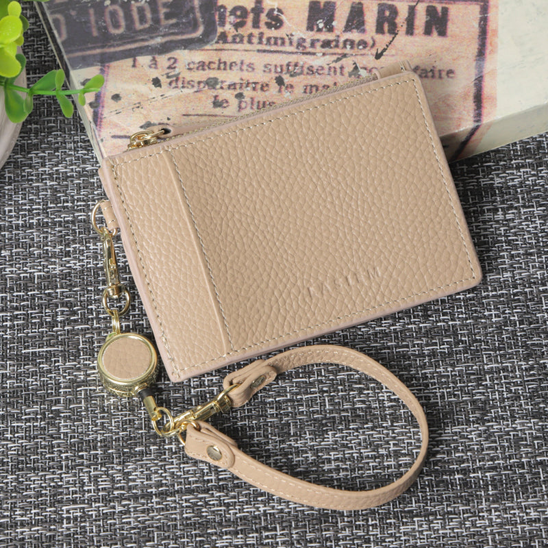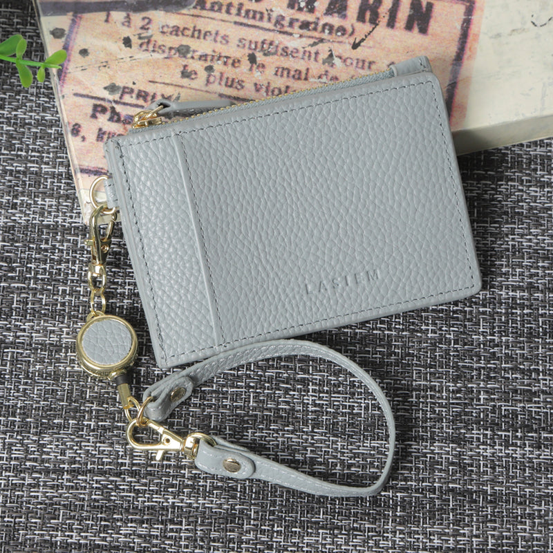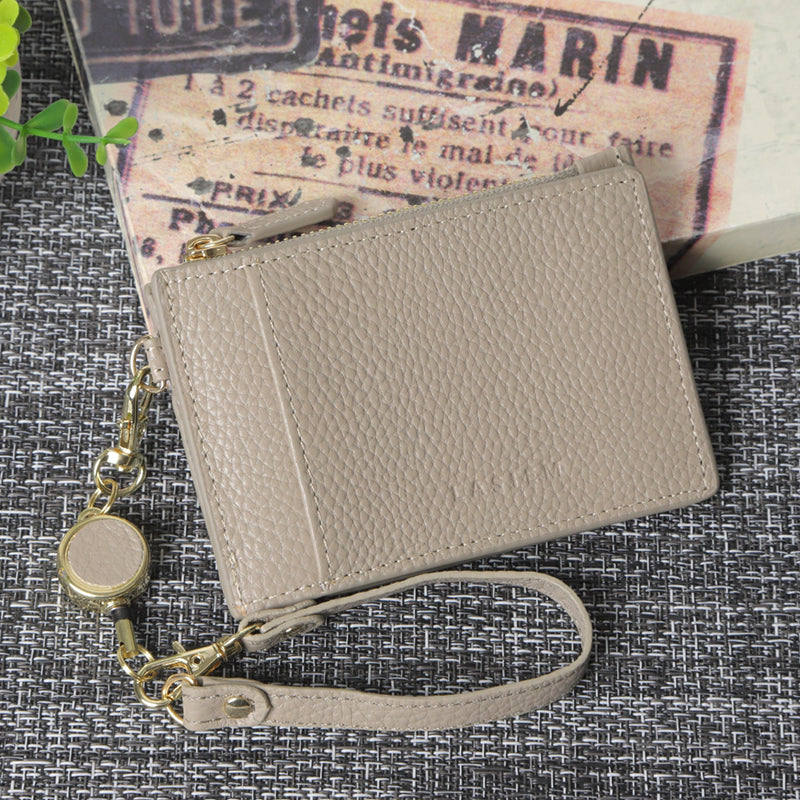 本革小銭入れ付きリールストラップ二つ折りパスケース