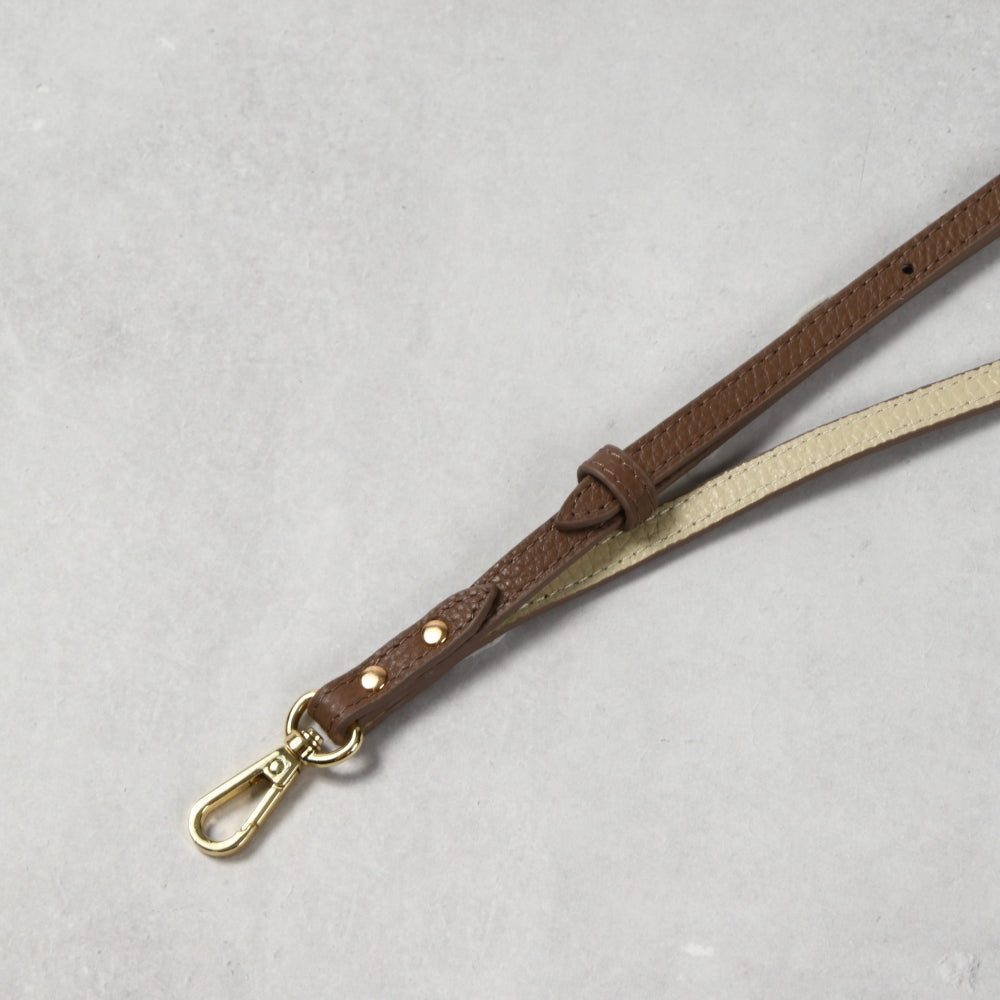 商品紹介 | 【LASIEM(ラシエム)】ブランドの商品です。 バイカラーの女性らしいデザインが光る 全機種対応のレザースマホストラップ |