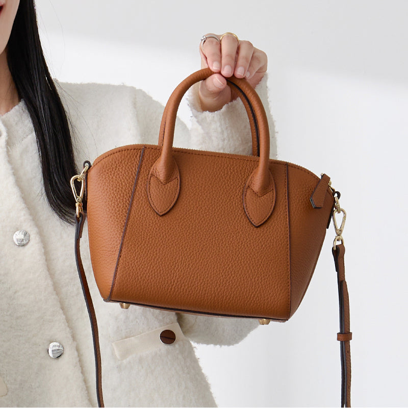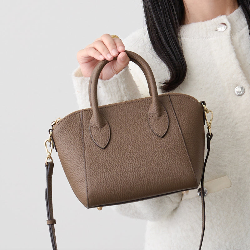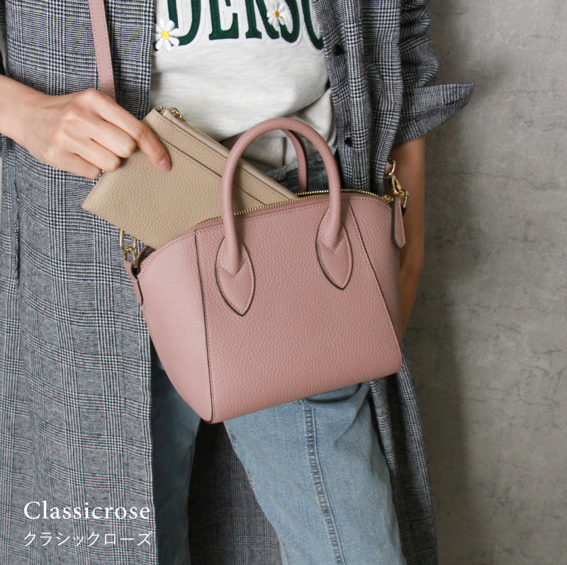 特徴 | ■4つの特徴 2Wayショルダーベルト付 ペットボトルが入る収納力 牛本革 底鋲付き \こんな方におすすめです!/ ・上品な本革素材がいい ・どんな服装にも合うバッグがほしい ・卒入学式などのフォーマルにも使いたい ・ほどよくトレンドを取り入れたい ■普段使いからフォーマルな場まで! どんなシーンにもお持ちいただけます。 @話題のカフェで大人女子会 おしゃれしてお出かけしたい女子会には、 どんなコーディネートにも合わせやすいバッグが大活躍。 @通勤 PCを持ち歩かなくていい日は、通勤に。 レザーだからカジュアルになりすぎません。 @お買い物や幼稚園の送迎 「ちょっとそこまで」のお買い物や、毎日の送り迎えには、両手がフリーになるショルダーベルトで。 お散歩にもちょうど良いサイズ感です。 @卒入学式や結婚式@ 本革使いのクラス感は、 お子様の卒入学式や結婚式などのお呼ばれの席にもぴったりです。 手荷物が増えたらショルダーバッグにも。 ■「小さく見えて、収納力◎」 長財布やスマホはもちろん化粧品やキーケースなど、 お出かけの必需品がしっかり収納できるベストなサイズ感です Point! ・350mlペットボトルがラクラク入る ・スマホの出し入れに最適なオープンポケット ・貴重品や小物の収納に便利なファスナーポケット ■「大人にふさわしい牛本革」 上質な牛革を厳選して使用。 シボ感のある牛革だから、 傷や汚れが目立ちにくいところもポイントです。 ■「底鋲付き」 かばんの底は底鋲が付いているので、 お仕事などで床に置かなければならないシーンでも安心です。 ■「総革ショルダーストラップ」 カジュアルにはショルダースタイルで、フォーマルにはハンドバッグで。 ショルダーストラップは、スタイルに合わせて自由に取り外しできます。 約105cm~120cmの間で5段階調整可能 ※モデル身長163cm ■「大人のための上品トレンドカラー」 アイボリー グレージュ トープ キャメル クラシック ローズ ブラック |