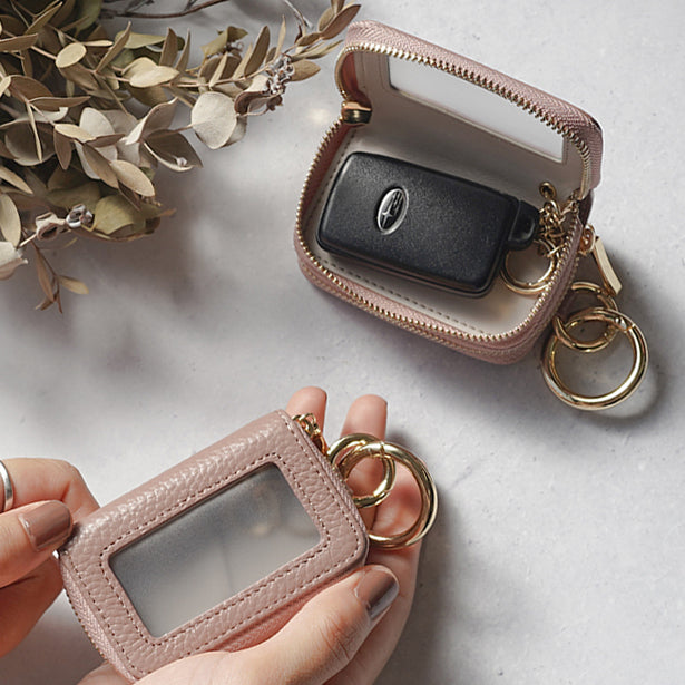 家や車のカギをひとまとめにできて、ちょっとした小物入れにも使えるコロンとしたフォルムの「ダブルファスナー」の2タイプのキーケースをご用意!