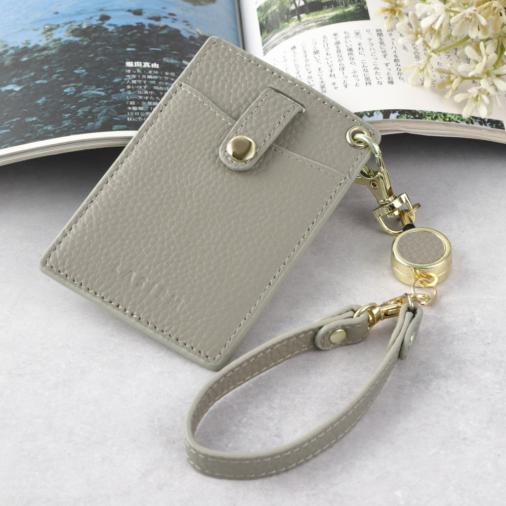 本革リールストラップ付きパスケース