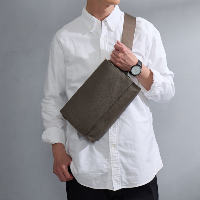 特徴 | ■DESIGN/デザイン 時代やトレンドに流されることなく、長く愛用できるタイムレスなデザインを追求しました。 ■FLAP/フラップ フラップで収納部分をカバーすることでスタイリッシュな印象に。 防犯面の安心感もプラス。 フラップは内蔵された2か所のマグネットボタンで、ワンタッチで留められます。 ■CAPACITY/キャパシティ 見た目以上に頼れる、ちょうどいい収納力。 容量は約3リットル。必要なもの以外にも、もう少しだけ入る収納力を確保しつつ、洗練されたスマートなシルエットを追求。こだわり抜いたサイズ感です。 財布や500mlペットボトル、スマホ、小物類などがしっかり収まります。 大きすぎず、小さすぎず。持ち歩きに“ちょうどいい”収納力です。 (収納例)二つ折り財布・ペットボトル・折り畳み傘・キーケース・スマホ・エアーポッズ・ハンカチ ■DOUBlE FASTENER/ダブルファスナー メイン収納部はダブルファスナーを使用することで 好きな位置でファスナーの開閉が可能に。 右利きの方も、左利きの方も使いやすい構造です。 ■INSIDE/内側ポケット 内側前面にオープンポケットが2つ付いています。 W12cm✕H14cm 内側背面にファスナーポケットが1つ付いています。 W20cm✕H12cm ブランド刻印は内側にさりげなく。 ■OUTSIDE/外側オープンポケット 頻繁に出し入れするスマートフォンは外ポケットにサッと収納。 中央にマグネットボタン付き ■SHOULDER BELT/調整可能ショルダー ショルダー部分は約60~114cmの間で調整可能。 穴を使用しない無段階調整なので、自分の体のサイズに合わせて柔軟に調整することができます。 その日のコーディネートに合わせて長さを変えたり、家族で兼用するのもおすすめです。 ■MATERIAL/素材 耐久性に優れた牛本革を採用。 シボの風合いとマットな質感が大人の上品さを演出。 ■DETAIL/ディテール 金具はブラッククロムで統一し、上品で落ち着いた印象に。 メインファスナーの両端はスナップボタンで留めてスッキリ。 ■SCENELESS/シーンレス シーンもスタイルも選ばない、ミニマルデザイン オフィスカジュアルからオフの日の街歩きまで、幅広く活躍する万能ボディバッグです。 ■UNISEX/ユニセックス 洗練されたシンプルさと落ち着いたカラーリングで、性別を問わずお使いいただけます。 パートナーとさりげなくお揃いで使うのもおすすめ。 ■オリジナル収納袋付き プレゼントの際やご自宅での保管時に最適な、オリジナル収納袋を付けてお届けします。 |