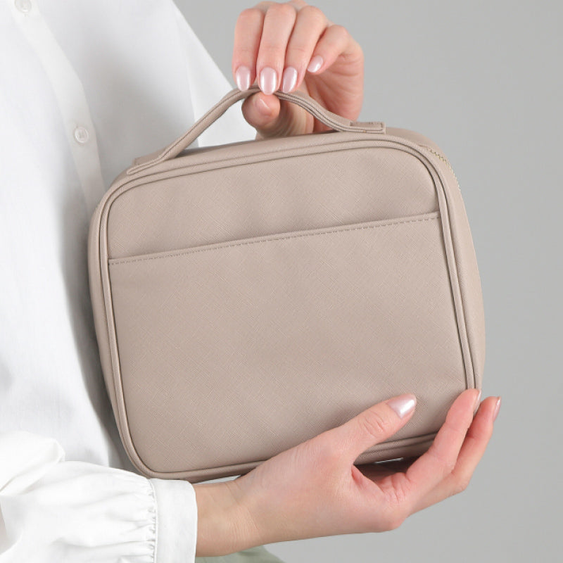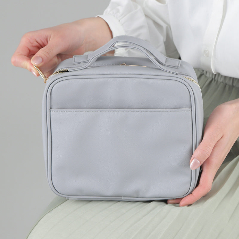 特徴 | ■「6つの特徴」 ・たっぷり入る大容量 ・ガバッと開いて一目瞭然 ・大きめメイクブラシも入る ・収納スペースは15個 ・収納しながら整理整頓 ・お手入れOK ■「大容量の収納力」 \コスメ好きのために開発したポーチ/ 普段使いのコスメから、出番の少ないメイク道具まで1つにスッキリ収納できるポーチを目指しました。 Point! 背の高いブラシや大き目パレットも余裕で収納◎ 通常のポーチには収まりにくい、かさばるスプレー類や大きいパレットもすっぽり入るので旅行にも最適です。 ■「15個の収納スペース」 ・ゴムバンド×4 ・メインポケット×2 ・サイドポケット×2 ・ファスナーポケット×1 ・深底ポケット×1 ・幅広ポケット×1 ・ミニポケット×3 ・外ポケット×1 Point! 大小さまざまなサイズの収納スペースを追及し、コスメを整理しやすく一目で見渡せる設計に。 ■「ガバッと開いて自立する」 \メイクの時短にも◎/ 開いたポーチを自立させた状態でメイクができるので、使いたいアイテムを片手でスッと取り出せます。 Po1nt! 大きく開くファスナーで取り出しやすさ抜群! ■「お手入れ簡単な素材」 水を弾きやすい撥水ナイロン・PUレザーを使用。 洗面台でも気兼ねなく使うことができます。 ■「裏地にもこだわり!大人のくすみカラー」 \付着しやすいファンデやパウダーの粉が目立ちにくい/ 裏地は、各カラー・素材に合わせて大人可愛い「くすみカラー」を厳選しました。 Point! どこに何が入っているか一目でわかりやすい◎ ■「ほどよいクッション性」 外側のクッション生地は、かさばりにくいタイプを採用。 お気に入りの化粧品はしっかり保護しつつ、大容量なのにコンパクトなサイズ感を実現しました。 ■「隙間に収まるスリム設計」 \たったの幅8cm/ 厚さを極力抑えることで、狭いスペースでも立てて収納することが可能です。 Point! わずかなスペースにもすっきり収まる! ■「用途は無限大!マルチな使い方ができる」 「救急箱」や「お道具箱」として、コスメ以外の収納方法も◎ アイデア次第で便利にお使いいただけます。 ■「Colorver」 落ち着いた繊細な大人のくすみカラーで、インテリアに馴染むカラーをご用意しました。 |