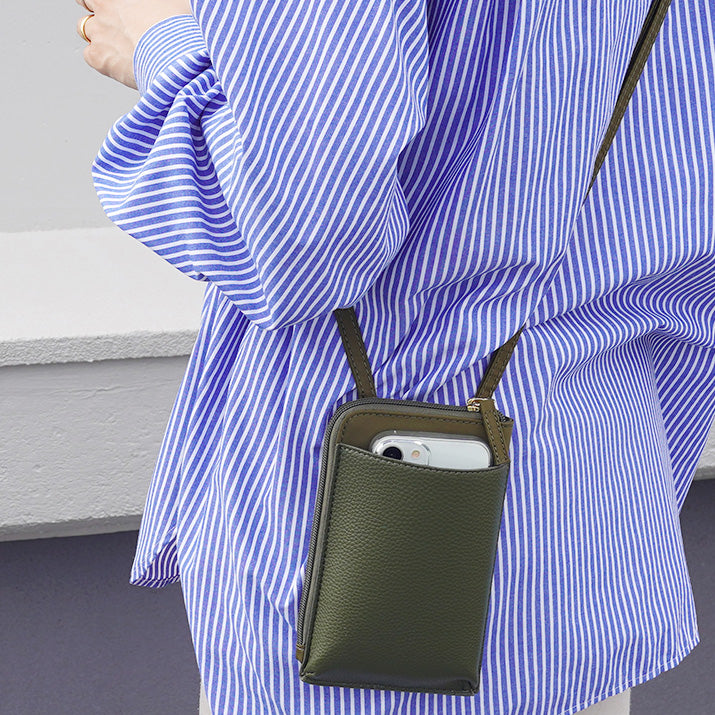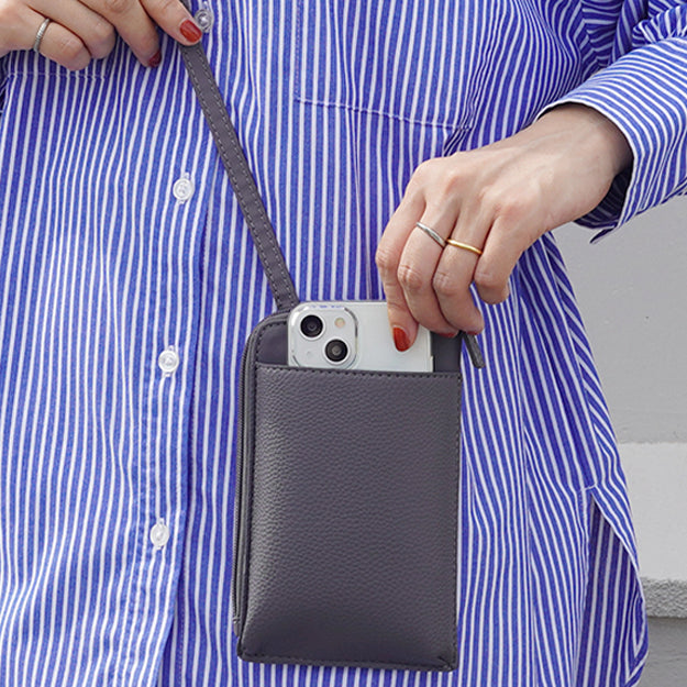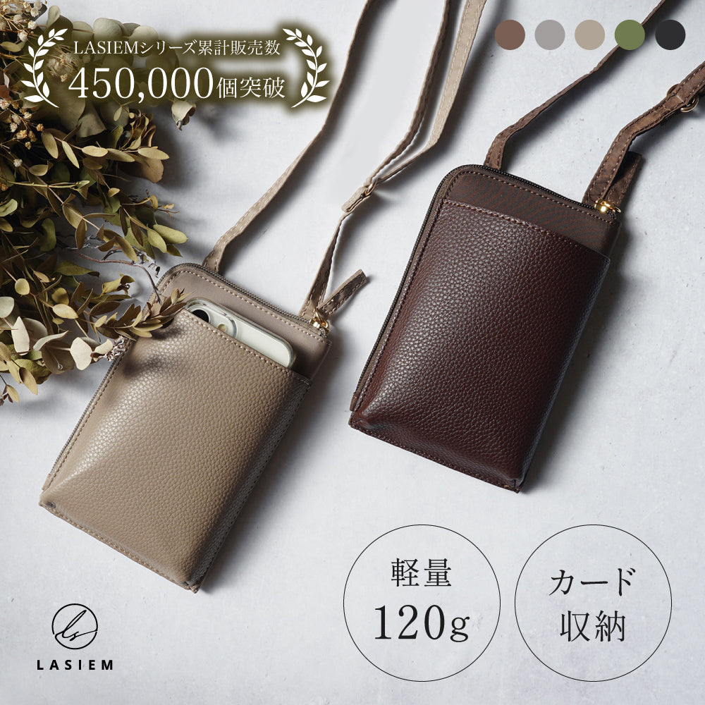 商品紹介 | 【LASIEM(ラシエム)】ブランドの商品です。 約120gの超軽量スマホポーチが登場! スマホをいつでもサッと取り出せるよう大きめの外ポケットを採用! カードや鍵も収納できて「ちょうどいい収納力」があるスマホポーチです。 |