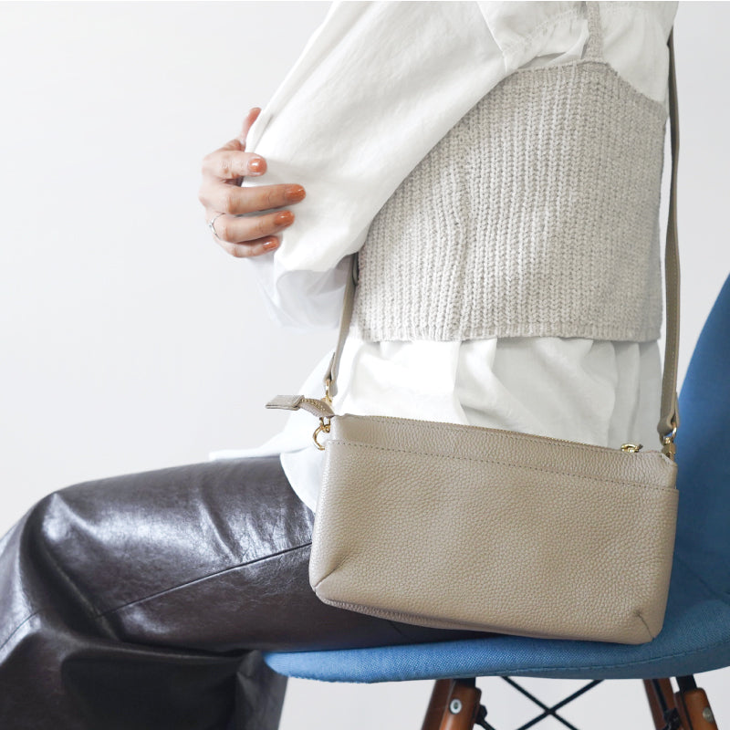 特徴 | ■「従来品をご愛用中のお客様の声」 ・ もっと小さいお財布ショルダーが欲しい! ・ 見た目が コンパクト で、 たくさん入るバッグ がほしい。 ・ 長財布が入るミニショルダー がなかなか無い… ・ 今の ショルダーバッグ が重たいので買い換えたい。 ・ パーティ用の ミニバッグ をずっと探しています。 ・ 通勤 にも使える可愛い ミニショルダー が欲しい! お客様の声を元に \NEWタイプが登場/ ■「4つの特徴」 ・ お財布機能付き ・ 長財布 がラクラク 収納 ・ 2WAY ・ 牛本革 × バイカラー ■「どんなシーンにもお持ちいただけます」 ちょっとしたお出かけも、大人女子会にも! ・公園with大きめバッグ 大きめのバッグを持つときも貴重品は身に着けていられると安心。 ・大人女子会 おしゃれをしてのぞみたい、大人女子会に。「それどこの?」って話題になっちゃうかも! ・通勤 スーツではない会社なら、通勤にも。レザーだからカジュアルになりすぎません。 ・結婚式やパーティ クラッチベルト に付け替えて、もっと 上品 に。手荷物が増えたら ショルダーバッグ にも。 ・ライブやフェス 両手をあけて踊りたい、ライブやフェスにもおすすめです。 ・ドライブや旅行 車からちょっと降りたいときにも便利です。ベルトを取り外してバッグインバッグも◎ ・お買い物やお散歩 「ちょっとそこまで」のお買い物やお散歩にもちょうど良いサイズ感。 ■「3か所の収納」 小さく見えて、収納力抜群! (1)メイン収納、(2)お財布ポケット、(3)スマホなどが入る外ポケットの3か所に分かれています。 荷物が迷子にならないのが人気の秘密! ■「お財布ポケット」 たくさん入って整理しやすい! 大きなファスナー付きの収納は、そのままお財布として使えます。 (1)~(6)カードポケット、(7)ファスナー付ポケット、(8)フリーポケット の合計8個のポケットが付いています。 ■「見た目以上の収納力◎」 長財布 も入ります! カード6枚、お札2枚、小銭14枚、鍵、長財布、スマホ、アルコールスプレー、コスメ・・・ 必要なものは全て入ります。 ■「大人にふさわしい 牛本革 」 上質な牛革を厳選して使用。シボ感のある牛革だから、傷や汚れが目立ちにくいところもポイントです。 Point:カードポケットにも 本革 を贅沢に使用しています。 ■「 本革 ストラップ2本付 」 シーンやスタイルに合わせて、自由にお楽しみいただけます。 ・ショルダーストラップ:約92cm~約117cm ・クラッチストラップ:約17cm ■「気分高まる バイカラー 」 開けるたびに心が躍る、 トレンド 感たっぷりな色使い。 |